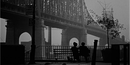 Woody Allen riprende la composizione di Hopper spostando la visione della scena dalla prima persona alla terza, inquadrando se stesso e Diane Keaton di spalle, nell’atto di ammirare il ponte sulla cinquantanovesima strada. Ciò che gioca un ruolo di estrema importanza nell’inquadratura è la fotografia, che si “sostituisce” alla resa cromatica di Hopper, scurendo completamente gli elementi sul piano più vicino allo spettatore, creando delle vere e proprie sagome, immobili e piccole davanti al tripudio di toni di grigio della struttura, vera e propria protagonista del quadro cinematografico.