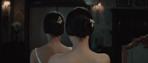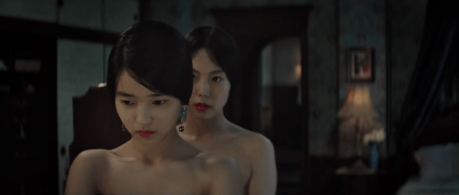 A livello compositivo, ovviamente, vengono sfruttati i mezzi propri del cinema, riproponendo dunque le due figure del quadro grazie alla presenza di due attrici fisicamente molto simili tra loro e acconciate in maniera praticamente identica. Senza mancare di contestualizzare il tutto, Park Chan-wook cala la situazione in un momento del film molto particolare, nel quale vari dubbi e problemi iniziano a nascere nella mente delle due, che si realizzano in un botta e risposta nel quale vediamo l’alternarsi della posizione dell’una e dell’altra. Lo spettatore quindi vede i volti di entrambe, ma loro non si guardano mai, di fatto. Ciò che crea il regista quindi è una situazione emotivamente molto forte, in cui nessuna delle due sa ciò che prova l’altra, né la sua espressione in quel determinato momento. Come dirò più giù nell’articolo, allo spettatore vengono dati degli elementi precisi, binari nei quali muoversi per recepire a pieno la riflessione del regista sul mezzo cinematografico e sui suoi strumenti di rappresentazione.
