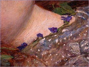 Viola del pensiero: Riflessione. Ophelia raccoglie questi fiori “per i pensieri”(«Ecco del rosmarino; è per memoria. Non ti scordare, amore; e qui le viole, per i tuoi pensieri»).