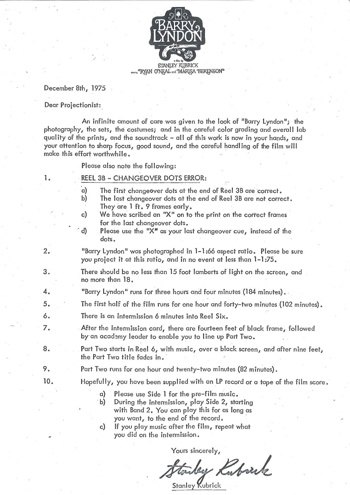 Barry Lyndon è un’opera immensa, da ammirare e vivere; non c’è nessuna critica da muovere al film. Il progetto è qualcosa di estremamente preciso e sentito, un vero e proprio omaggio al XVIII secolo espresso in ogni singolo elemento della pellicola. L’ossessiva attenzione di Kubrick per i dettagli ha fatto in modo che tutto ciò diventasse realtà. Alcune lenti utilizzate del regista furono progettate per la NASA ed usate su un’esclusiva macchina da presa utilizzata per il film per girare le sequenze a lume di candela (sequenze girate nell’arco di molto tempo. Ogni scena veniva girata dalle 10 alle 30 volte – con conseguente cambio di tutte le candele dopo ogni ripresa). La minuziosità di Kubrick fu quindi determinante per la buona riuscita di quest’opera incredibile.