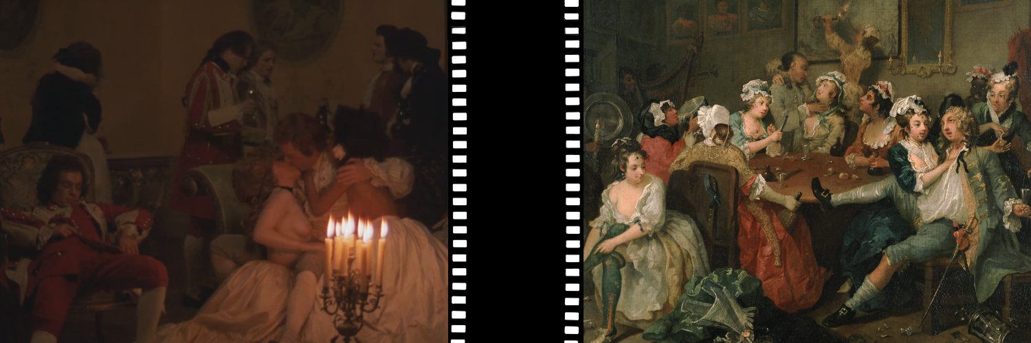 William Hogarth è stata certo una delle principali fonti di ispirazione per Kubrick, soprattutto per le sue opere estremamente taglienti ed accentuanti la vita sfrenata e lasciva degli uomini benestanti del tempo. La parabola di Barry Lyndon perfettamente si sovrappone a questo concetto: da un certo punto in poi della pellicola, infatti, più volte l’influenza della pittura di Hogarth si fa sentire nelle inquadrature. Tratterò solo alcuni dipinti del pittore tratti dalle sue due serie più importanti: La carriera di un libertino e Matrimonio alla moda (titoli che, tra l’altro, sono facilmente accostabili ad alcuni momenti della vita di Edmond Barry nel film).