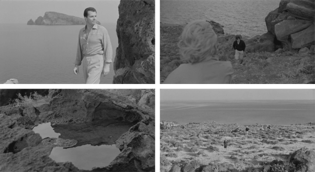 Non c’è il sole ne L’avventura. Per un terzo della sua durata ci si trova su un’isola, di giorno. Eppure il mare, il cielo e la terra hanno lo stesso colore, lo stesso grigio. Un grigio estremamente piano, che gioca su sfumature leggerissime.