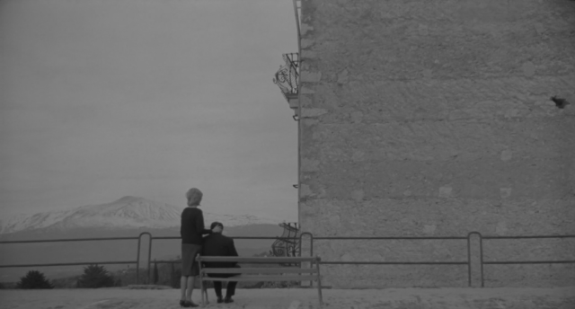 La macchina da presa inoltre si muove liberamente, spostandosi da un punto all’altro senza alcuna apparente motivazione e senza tornare (quasi mai) al punto di partenza: un regista/divinità che osserva senza sentire su di sé l’obbligo di seguire alcun meccanismo prestabilito; proprio in virtù di ciò ogni inquadratura de L’avventura diventa un microcosmo vivo e pulsante, forte della perfezione compositiva di Antonioni.
