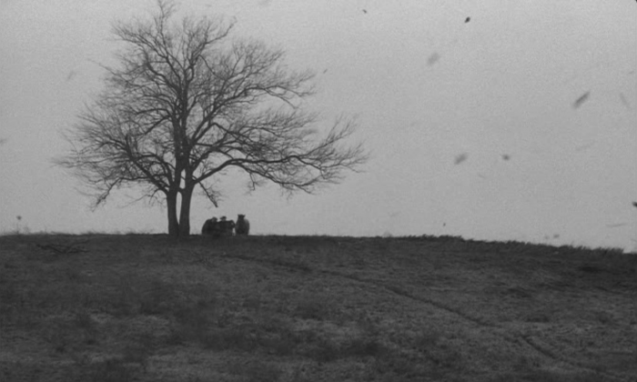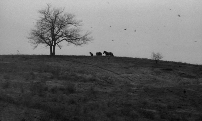 Non si tratta di un documentario ma di un’elegia: il triste lamento di un anziano signore che canta la sua terra, con un accento di difficile comprensione e con un testo tutto sommato non troppo comprensibile. Eppure nell’oscurità che avvolge il termine di ogni sequenza di Fogo vi è qualcosa che si percepisce: la stasi di chi ha deciso di restare e di sopravvivere un altro giorno. È Il cavallo di Torino (A torinói ló, 2011, 155′) capovolto, dopotutto: nell’ultima opera di Tarr, così come nel document(o)ario Tarr Béla: I used to be a filmmaker (2013, 88′) – Jean-Marc Lamoure, è esplicitato un concetto molto chiaro relativo ad una “maledizione” che attanaglia quelle pianure ungheresi dalle quali non si può scappare e al di là delle quali non vi è nient’altro se non altre ampie e deserte pianure: i due protagonisti del film tentano di andare via; escono dal campo visivo della mdp; pochi secondi bastano per vederli tornare indietro. La mdp non ci mostra l’al di là, non ce n’è bisogno: oltre quella collina vi è il nulla. I due sono costretti a tornare a casa, alla meccanica routine che, giorno dopo giorno, li porterà all’abisso.