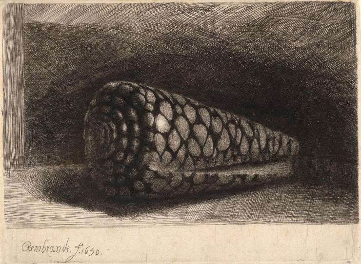 REMBRANDT, La conchiglia, 1650, acquaforte, puntasecca e bulino.