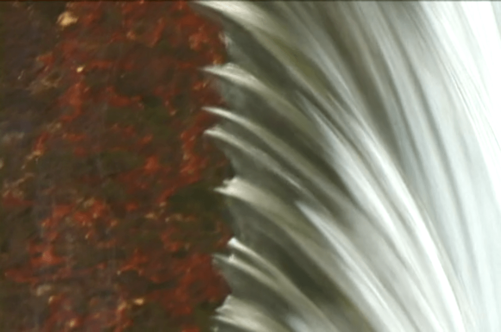 In Wateer seeking its level l’invito all’ascolto è decisamente più plateale rispetto ai due film precedentemente citati. Qui un elemento visivo prettamente cinematografico (parafrasando Andrej Tarkovskij) si scontra con la sua componente sonora distaccatasi a causa di una differenza nel loro protrarsi nel tempo: la tecnica di ripresa di Leighton Pierce creando uno scompenso tra il ritmo visivo e sonoro dell’acqua porta ad un particolare ritmo nel ritmo, come in un brano in cui un violoncello produce 4 semiminime e un pianoforte 16 semicrome. Questo sembrerebbe del tutto naturale in un ambito esclusivamente musicale e non sarebbe considerato come qualcosa di anomalo: nel cinema, invece, questo rapporto (al quale si aggiunge nei film di Pierce un leggero “ritardo” di un elemento nei confronti dell’altro) rompe un accordo implicito tra l’immagine e il suono che essa emana.