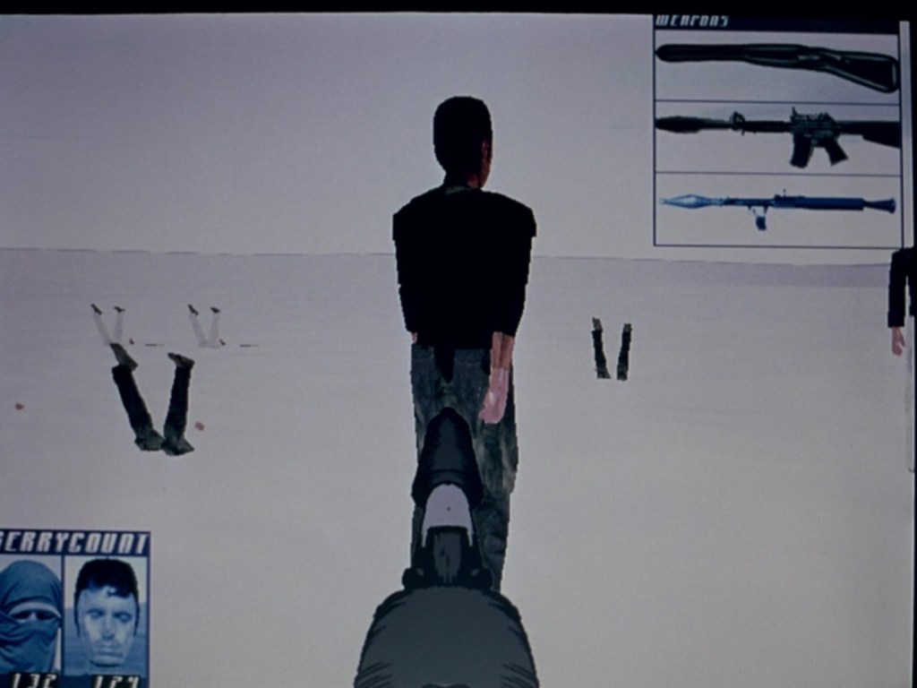 Una piccola parentesi a questo punto. Il tema del terrorismo giovanile è stato trattato da Gus Van Sant nel suo Elephant (2003, 81′) e, cosa ancor più interessante, adottando un sistema di ripresa volto a simulare quello di un videogioco in terza persona. Ecco che la macchina da presa del regista rimane ancorata ai protagonisti delle differenti sezioni (pur mantenendo nei loro confronti la stessa distanza che il videogiocatore mantiene nei confronti del suo avatar) e si associa, implacabile e indifferente, ai loro movimenti. Al momento opportuno, inoltre, cambia soggetto così come si cambia personaggio nel corso della campagna di un videogioco corale. In una sequenza, addirittura, alle immagini cinematografiche si sostituisce la stessa visione traslata in un videogioco dell’epoca, a sancire questa fusione col cinema. Inutile dirlo, HEXCRAFT: Eventide Sigil, in quanto opera legata al lavoro di XENOS Softworks4, simula un videogioco della fine degli anni ’90.