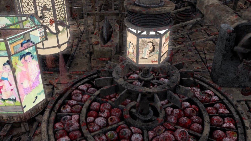 Anche le acque esterne sono imputridite dai corpi, dalla spazzatura, illuminate dalle luci di uno skyline dell’incubo che vede la Torre Eiffel vicino alla Statua della Libertà vicino alla Cattedrale di Notre Dames vicino al Partenone vicino alla Cattedrale di San Basilio vicino a solo il diavolo sa cosa. Nel mentre macchinari infernali (da guerra? poco importa) tappezzati di pitture erotiche orientali smistano pezzi di corpi: ecco che nel mondo al collasso di Su Zhong anche il privato è produzione in serie.