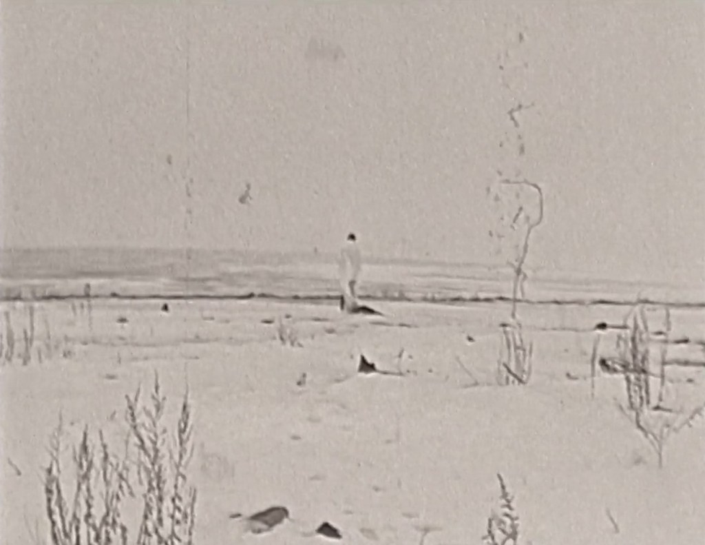 The Leaving è certamente il più icastico dei tre. Dalla durata di poco più di 5 minuti, l’opera si divide idealmente in 3 segmenti: una panoramica iniziale su un paesaggio completamente coperto di neve; una sequenza con un Cristo ammonitore; una sequenza in cui il Cristo si allontana dalla macchina da presa e si perde nel bianco della neve. Il titolo è eloquente, così come le immagini: Gesù è a terra, completamente vestito di bianco, e viene svegliato dal suono di campane. Dal volto deluso, egli guarda fisso nell’obiettivo della cinepresa, interpellando direttamente gli spettatori. Dopo alcuni minuti, come se il discorso congiunto del suo sguardo all’umanità e della camera (che mostra i buchi nelle mani e il sangue che sporca la neve) nei confronti dello spettatore fosse terminato, si volta e si allontana, facendo eco a una formula comune al cinema di un suo collega, Konstantin Lopušanskij. Non solo questo: il film sembra essere un vero e proprio pastiche di figure che hanno fatto la storia del cinema sovietico/russo. Si veda la colonna sonora: elettronica e solenne, come quella dei film musicati dal grande Ėduard Artem’ev (tra i più famosi sicuramente Solaris, Siberiade, Stalker, Oblomov). E com’è iconica l’inquadratura a volto tagliato di Sotnikov ne L’ascesa (1977) di Larisa Šepit’ko. L’immagine dell’uomo che si perde nella distanza, come si diceva, è una delle preferite di Lopušanskij. Così si chiudono Lettere da un uomo morto (1986), Il visitatore del museo (1989), Sinfonia Russa (1994), The Role (2013) – quasi tutta la sua filmografia, in pratica. La chiusura di Sinfonia Russa, poi, ha come protagonista proprio una sorta di Cristo. E tutti e tre questi finali sono figurativamente analoghi alla sequenza della Passione nell’Andrej Rublëv (1966) del loro illustre collega Tarkovskij (il finale di Sinfonia Russa, tra le altre cose, è un finale tarkovskiano).
