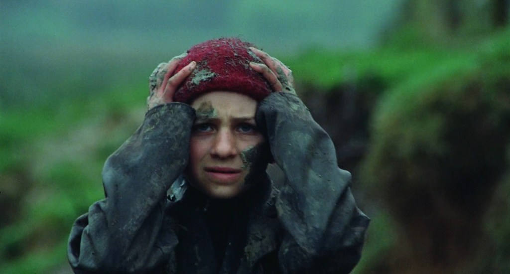 Vincent Ward fa appello, inquadratura dopo inquadratura, suono dopo suono, sguardo dopo sguardo, a tutto quel background di cui s’è detto per evitare didascalie letterarie o artifici teatrali. Appiattisce ogni profondità, ingigantisce il mondo a (s)favore dello sguardo di lei, si fa poetico nello sguardo, dove per poetico si intende l’assunzione del film della cognizione turbata del mondo di Toss. E così, dunque, inquadrando un mondo dal basso, in controluce, iconizzando ogni figura e facendone un totem, un terrore intimo diventa terrore del film intero – d’altra parte quant’è facile, figurativamente, per la macchina da presa assecondare il dubbio di Toss che chiede «Siamo tra le nuvole ora?» in cima a un monte avvolto dalla nebbia? Come se questo non bastasse, il cervello del film genera suoni anomali, musiche elettroniche o liriche, crea sfasamenti percettivi rispetto all’epoca e alla condizione in cui dovrebbe trovarsi questa famiglia. E quando una triste melodia di pianoforte rischierebbe di enfatizzare inutilmente una scena drammatica, ecco che si opta per la soluzione opposta: l’audio sparisce, resta il respiro di lei. E se il solo respiro dovesse causare una simile, facile suggestione, Ward ricorre a una soluzione che solo l’anno dopo sarebbe stata utilizzata al vertice massimo dell’espressività cinematografica in Va’ e vedi di Ėlem Klimov: suoni stridenti e astratti che si spengono nel volto di Toss che porta le mani alla testa come Aleksej nel film del 1985.