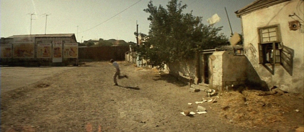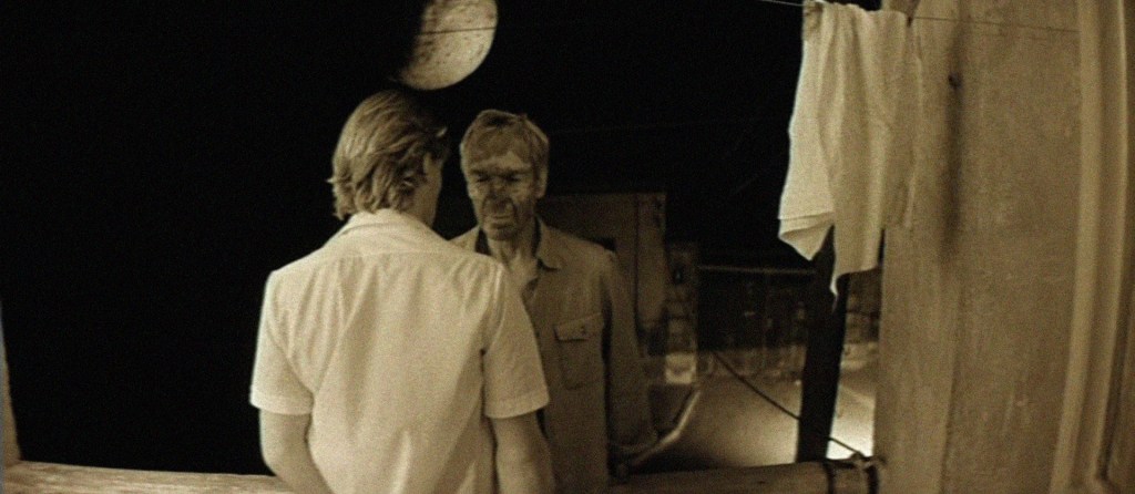 Mi dico che il villaggio in cui si trova Maljanov è stato costruito in forma di modellino per facilitare le riprese aeree e risparmiare budget prezioso. E invece a un certo punto una torcia/faro illumina le case di notte sostituendosi alla luna – sono alieni? Quindi erano alieni anche quelli del velivolo di inizio film… È per questo che il villaggio è stato ricostruito sotto forma di modellino. Non ne sono sicuro, non si capisce bene3. Un effetto posticcio ma non troppo, accettabile per il primo film finanziato da fondi statali per un autore che aveva già 36 anni e un bel po’ di produzioni indipendenti (e non proprio gradite dai piani alti) alle spalle. A un certo punto un effetto speciale (vecchio quanto il cinema) torna su quel modellino: Maljanov vi cammina sopra, gigante tra le case che ha abitato per tutto il film. Il modellino si palesa come modellino; una dissolvenza incrociata lo fa sparire e lascia l’arida pianura turkmena in cui Sokurov ha girato il film. Qualcosa gli ha fatto pensare che non potesse adoperare un modellino come scenografia reale e poi la sua scenografia come modellino reale? No, no e ancora no.