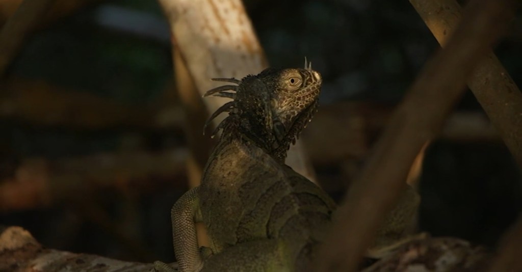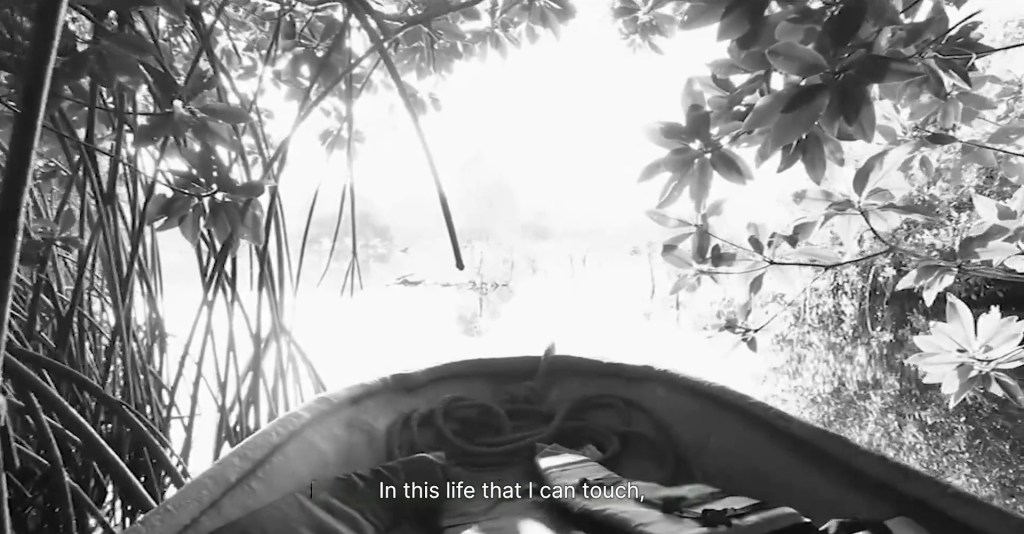 È estremamente interessante, poi, la modalità con cui questi due livelli si diano il cambio. Šarūnas e Una Marija sono in barca e l’uomo racconta a sua figlia molte cose sulle mangrovie: come crescono, che ruolo anno per i locali, quanto siano forti e resilienti come piante, quanto siano efficaci nel filtrare l’acqua salata e quanto siano essenziali in un ambiente ostile e soggetto agli uragani; si sofferma pure su qualche inquilino: «vedi gli uccelli lassù?». Fa il padre insomma. E aggiunge: «Sai dove ho visto le mangrovie per la prima volta? In Brasile, con tua sorella.» Pronuncia qualche altra parola che onestamente né io né Ina Marija abbiamo ascoltato; la cinepresa stacca sul volto di lei, un volto che proviene direttamente dai grandi capolavori di Bartas degli anni ’90 (Koridorius, Namai, Few of Us, Trys Dienos): guarda il ricordo fuori campo e non dice niente.